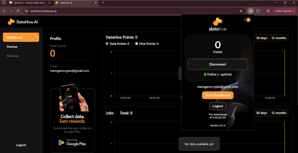 Go to datahive.ai and click the Download extension button to start earning.